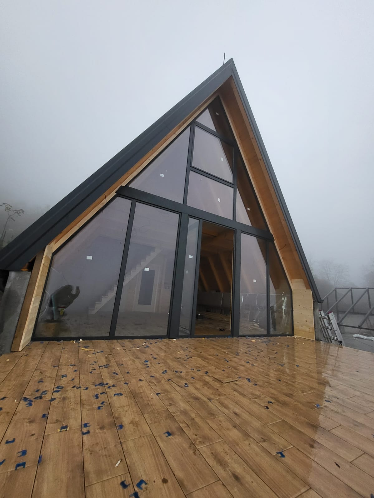 Izgradnja je bila brza i profesionalna, a rezultat prevazilazi očekivanja. A-frame stil daje savremen izgled, a opet toplinu pravog doma. Preporučujem svakome ko voli prirodu.