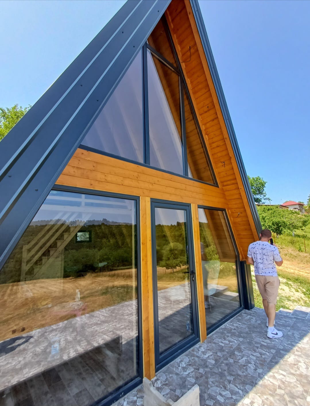 Izgradnja je bila brza i profesionalna, a rezultat prevazilazi očekivanja. A-frame stil daje savremen izgled, a opet toplinu pravog doma. Preporučujem svakome ko voli prirodu.